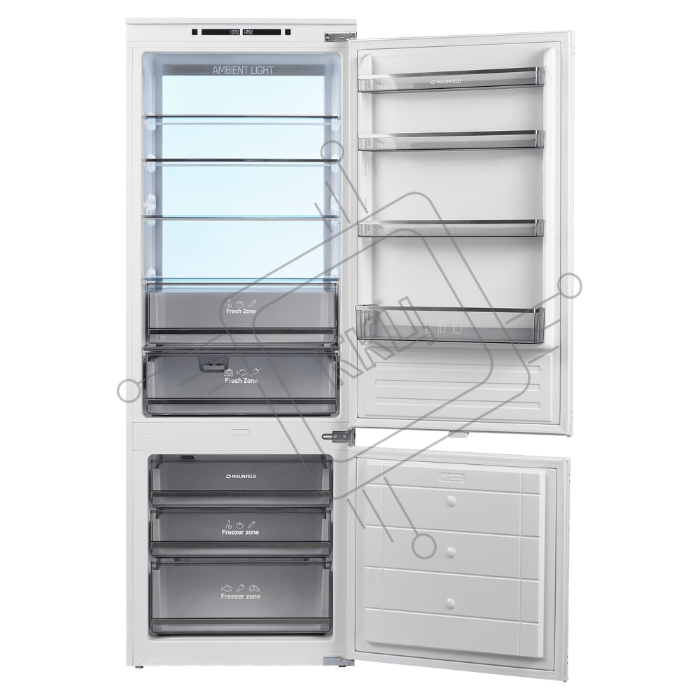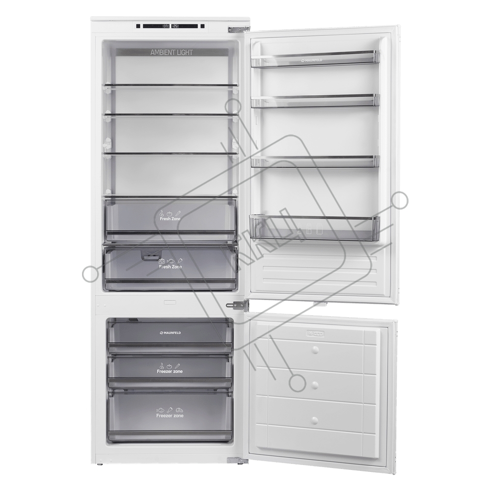 Встраиваемый холодильник Maunfeld MBF193NFW1GR Inverter белый двухкамерный 257/84 л морозилка снизу, No Frost