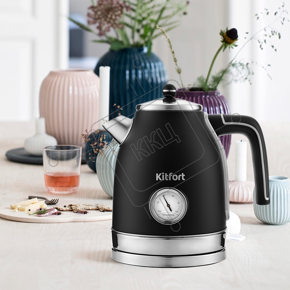 Чайник электрический Kitfort КТ-6102-1 черный с серебром