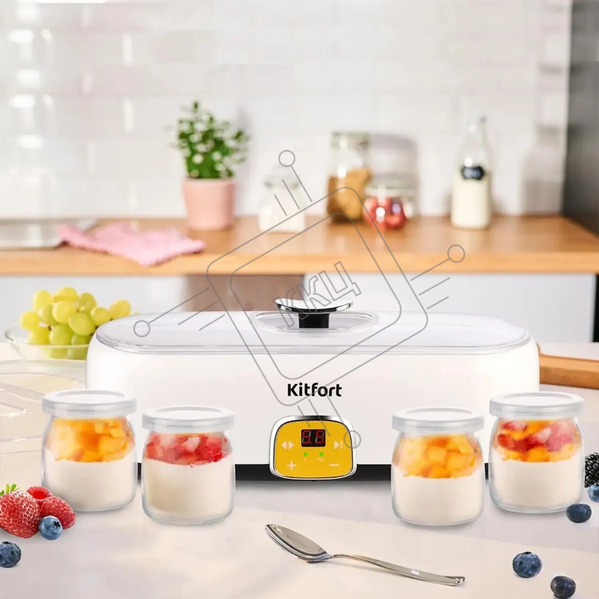 Йогуртница Kitfort КТ-6038 20Вт 4б. 200мл упр.:электрон. белый/черный