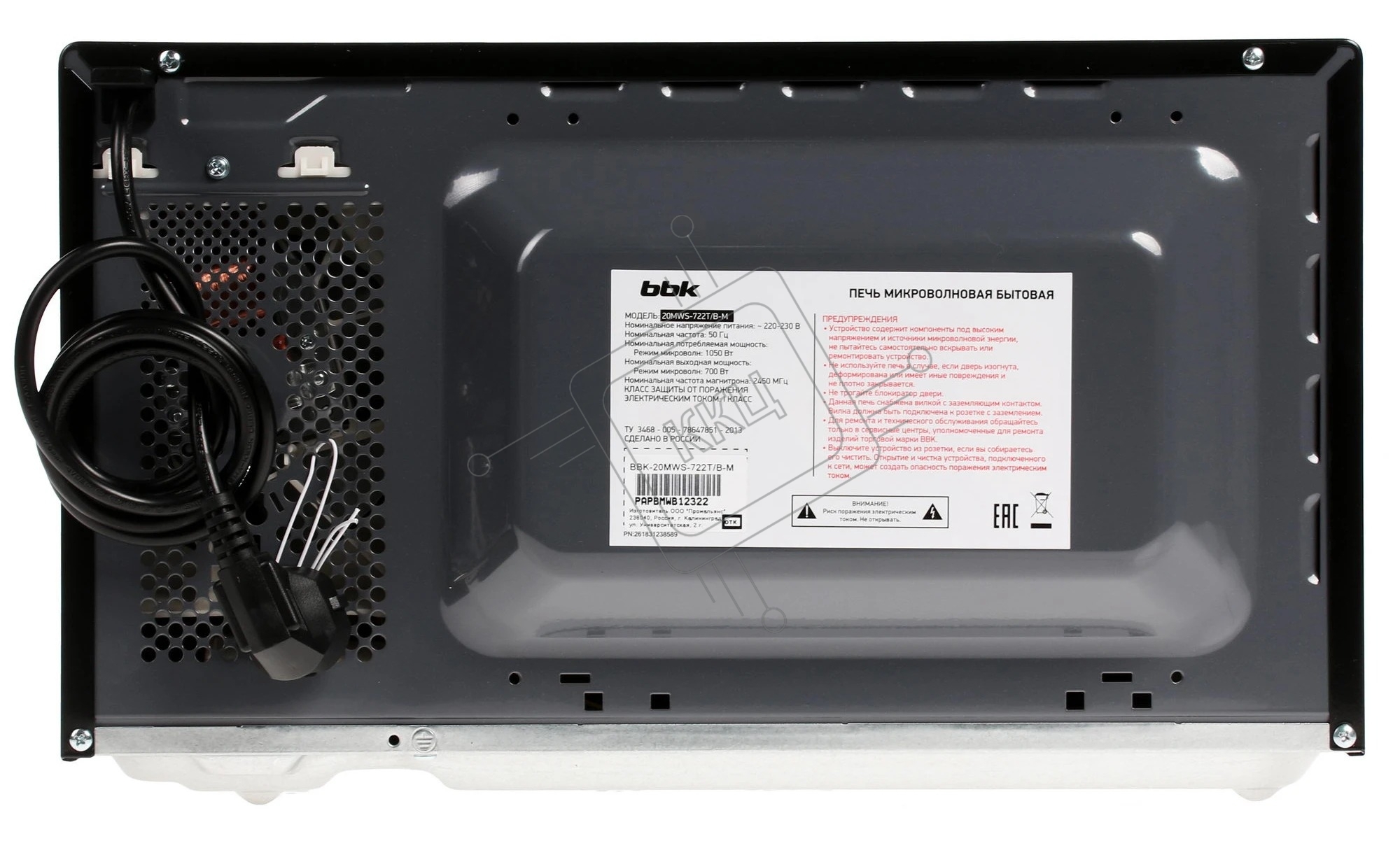 Микроволновая печь BBK 20MWS-722T/B-M/RU черный, 20 л, 700 Вт, переключатели - тактовый/сенсор
