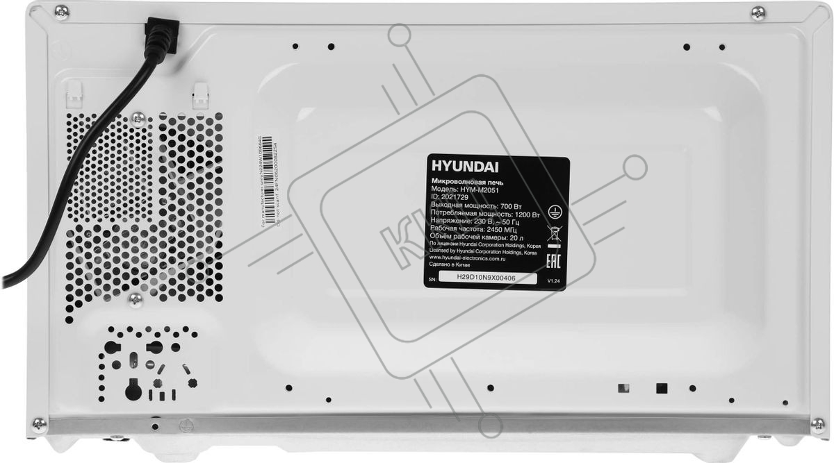 Микроволновая печь Hyundai HYM-M2051 белый, 20 л, 700 Вт, переключатели - поворотный механизм