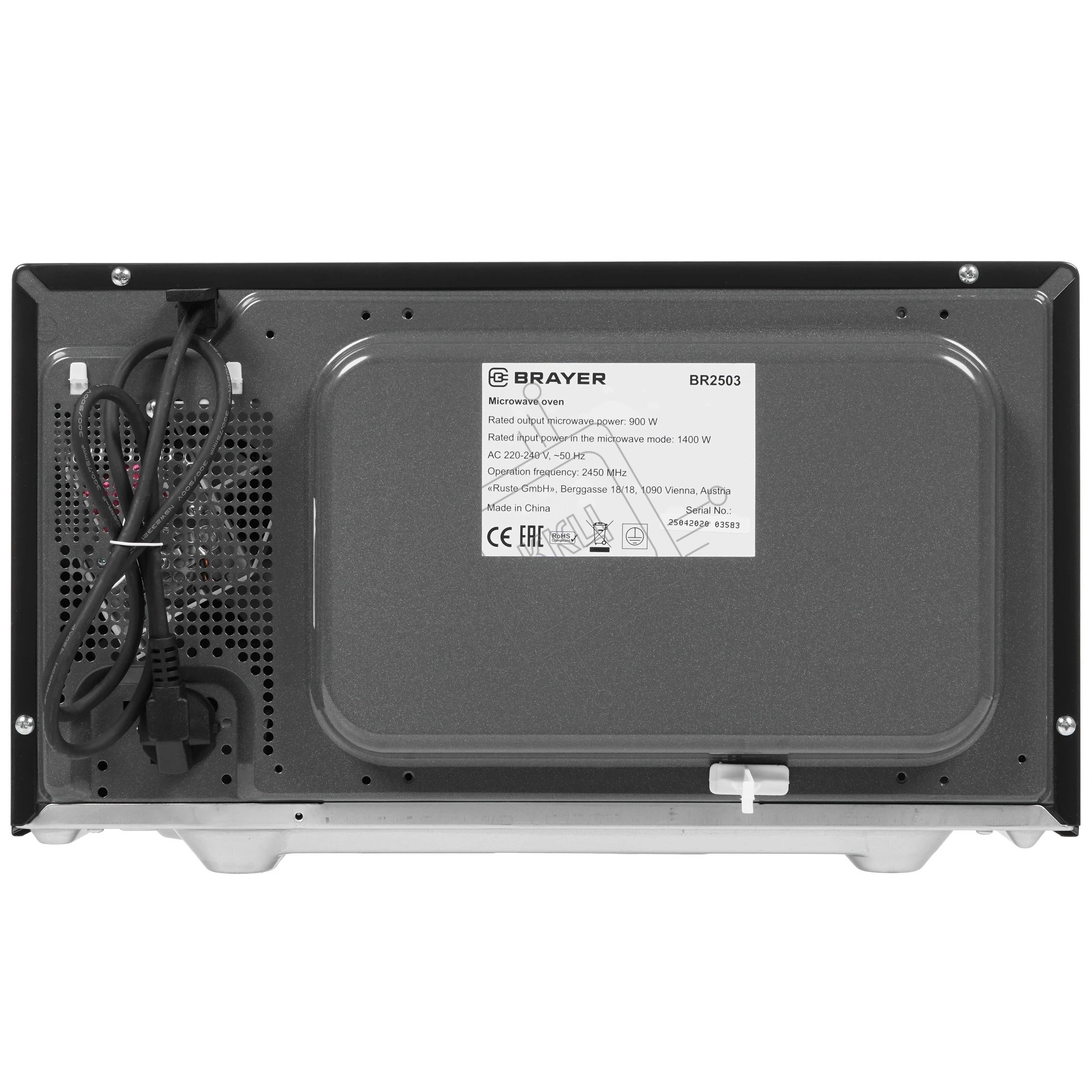 Микроволновая печь BRAYER BR2503 черный, 23 л, 900 Вт, переключатели - кнопки, поворотный механизм