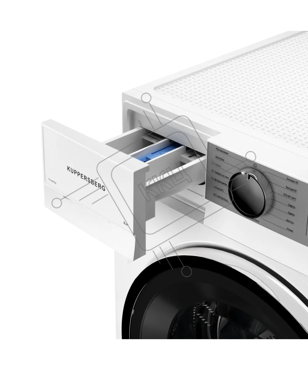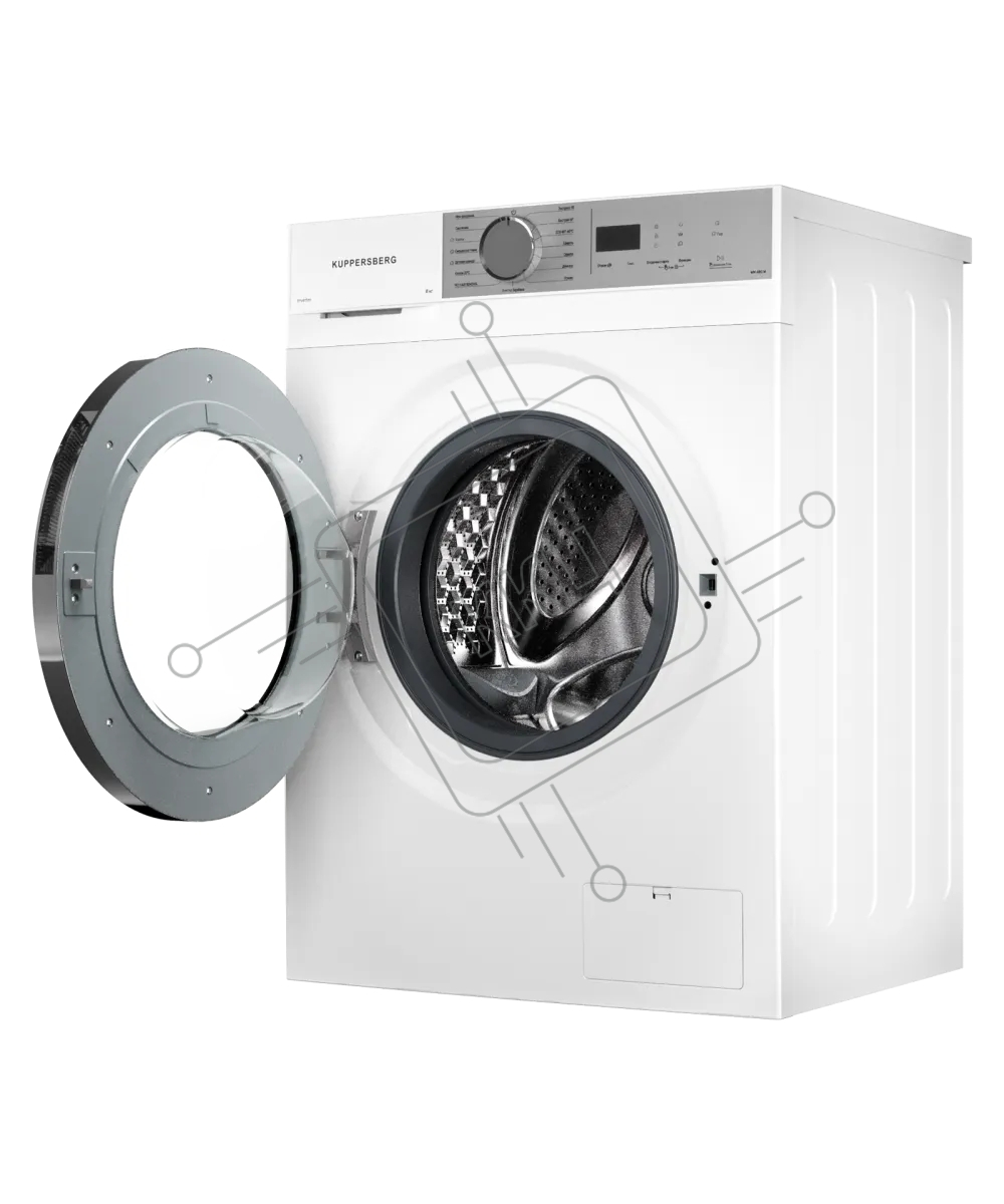 Стиральная машина Kuppersberg WM 480 W, отдельностоящая, 8 кг, 15 программ, 1400 об/мин, пар, дозагрузка белья, отложенный старт, предварительная стирка, LED дисплей, энергоэффективность А+++, белый