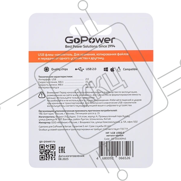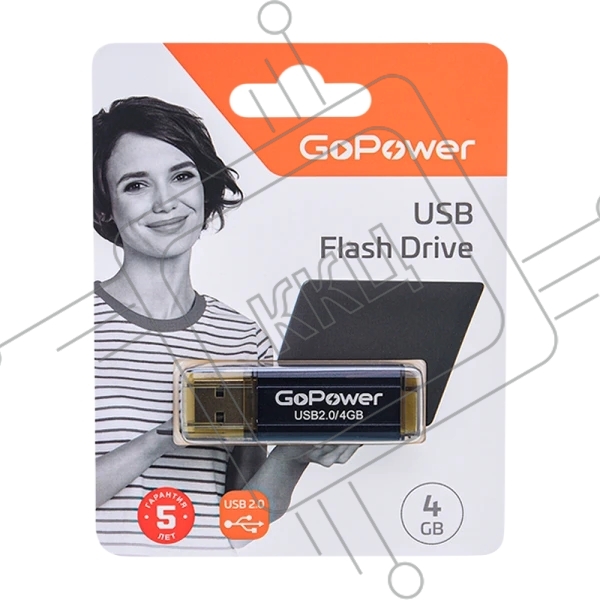 Флешка USB GoPower HIT, 4Gb, USB 2.0, R/W 25/10, черный