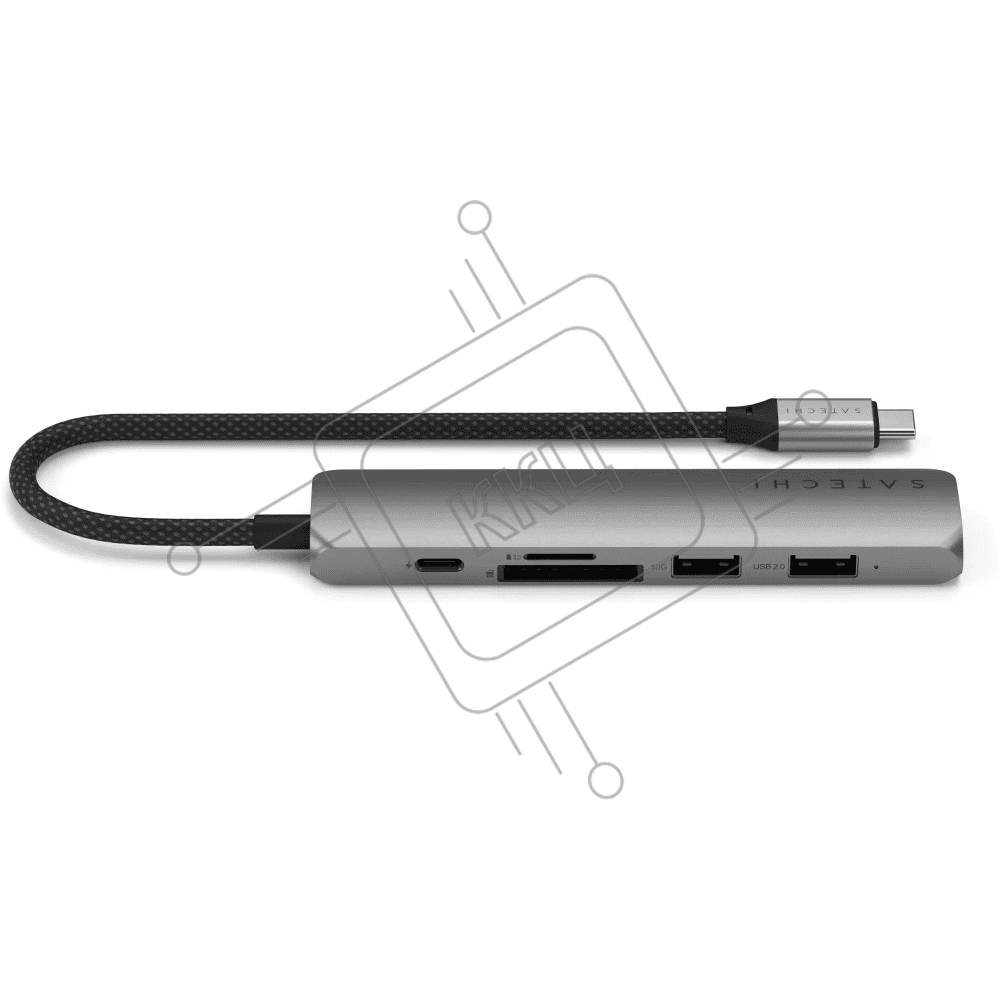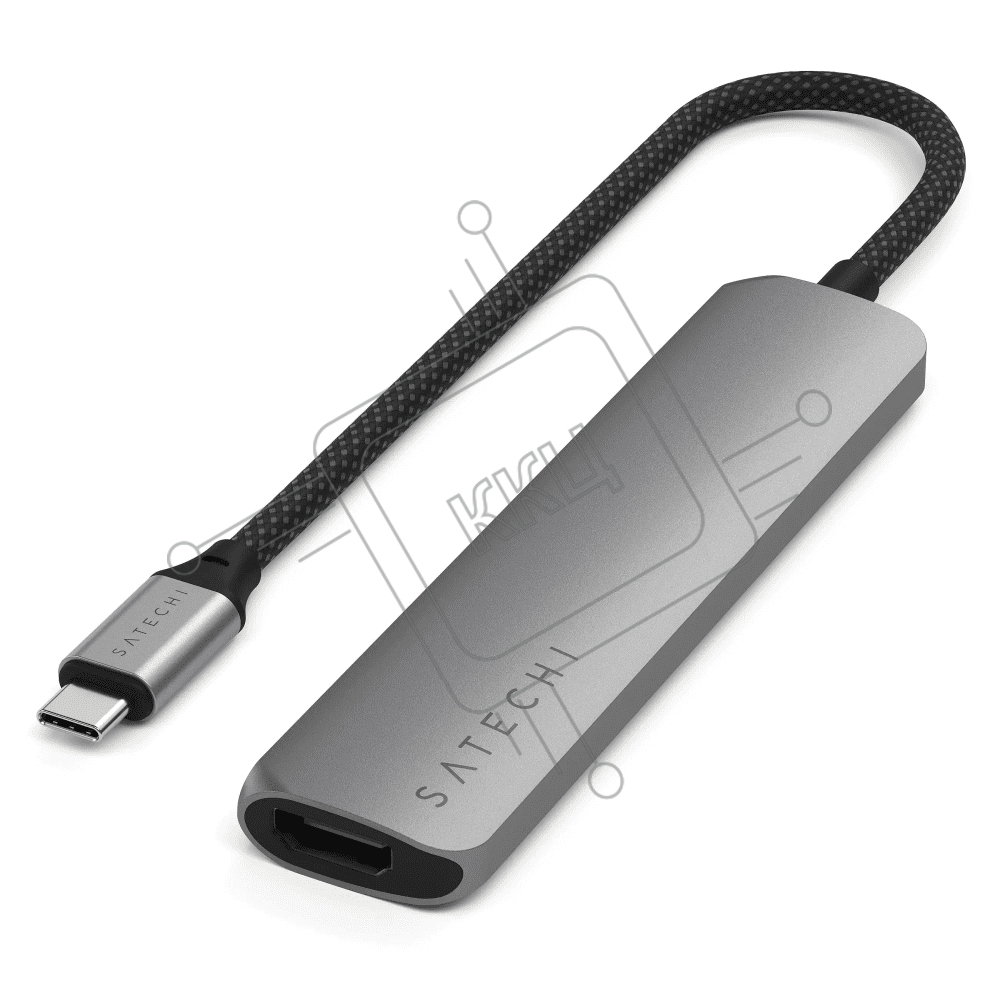 USB-концентратор Satechi 6-in-1 USB-C Slim Multiport Adapter (Type-C, HDMI, 2x Type-A, SD, microSD), до 75 Вт, Серый Док-станция ST-P6SM