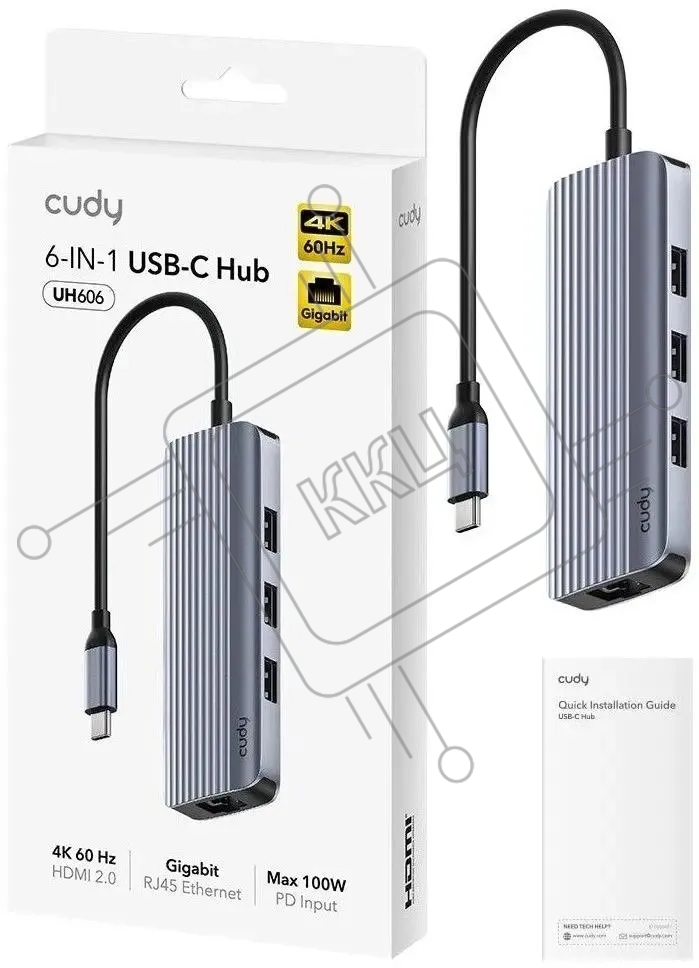 USB-концентратор CUDY 6-IN-1 USB-C Hub with GbE & 4K@60Hz HDMI