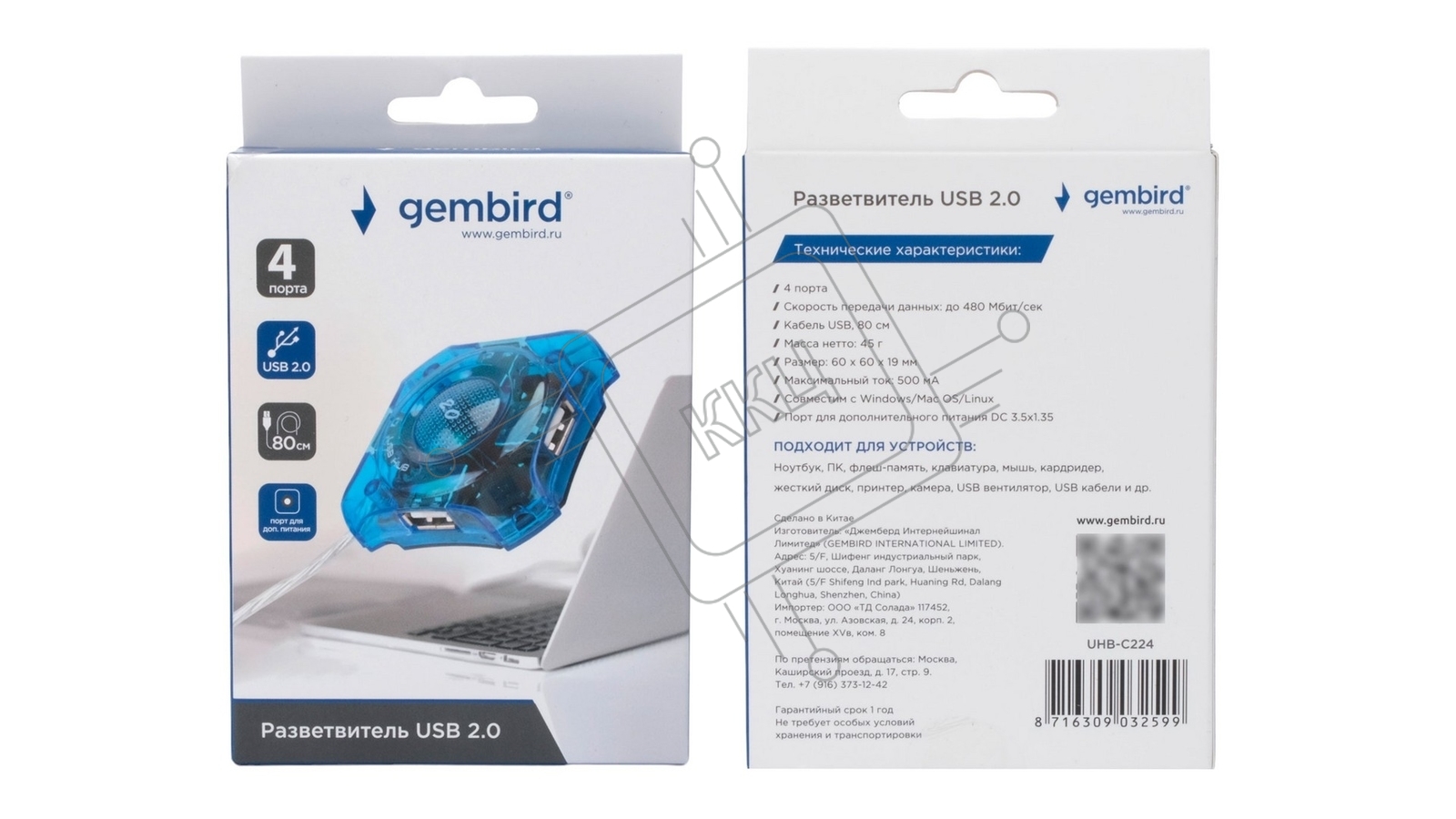 Концентратор USB Gembird HUB USB2.0 4-port UHB-C224