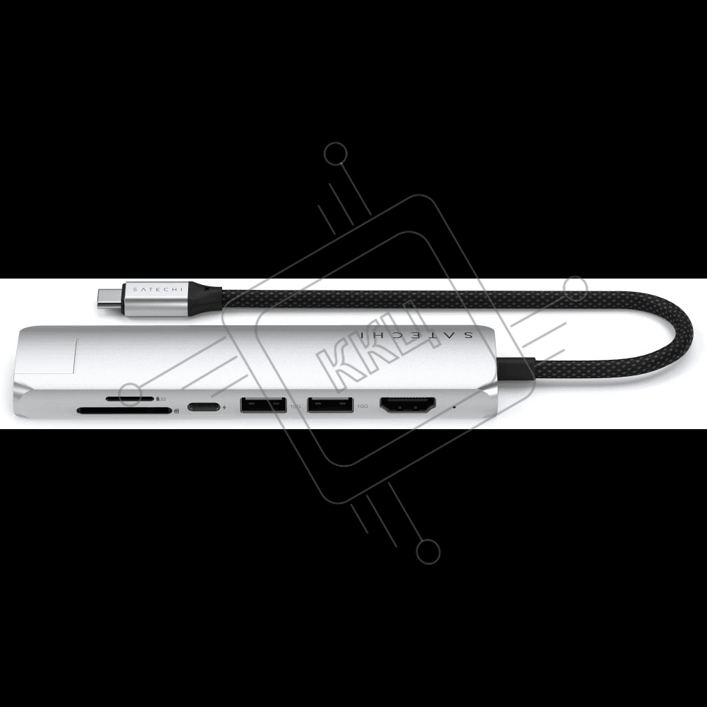 Док-станция (USB-хаб) Satechi ST-P7SS 7-in-1 USB-C Slim Multiport Adapter with Ethernet (Type-C,HDMI, 2xType-A, SD,microSD, RJ-45), до 80 Вт серебристый