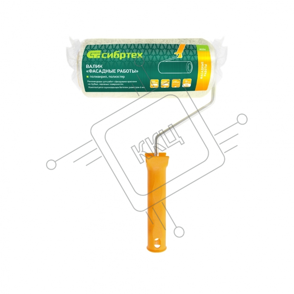 Валик Фасадные работы,180мм,ворс 18мм,D 48мм,D ручки - 6 мм,полиакрил,полиэстер Сибртех