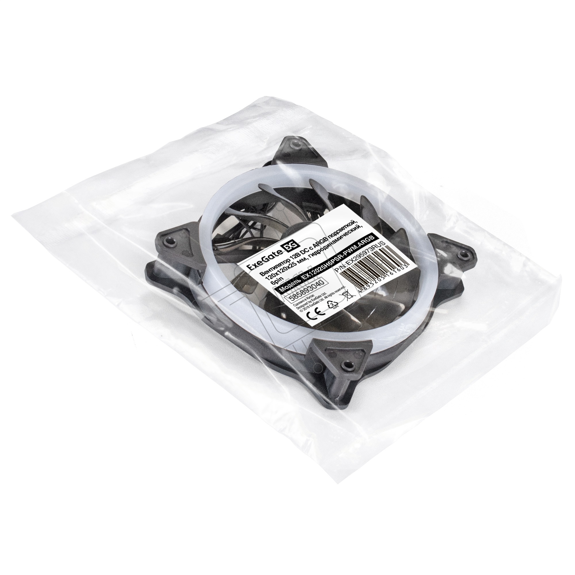 Вентилятор для корпуса ExeGate EX12025H6PSR-PWM.ARGB черный, 120 мм, 1200 об/мин, 33 дБ, 6 pin