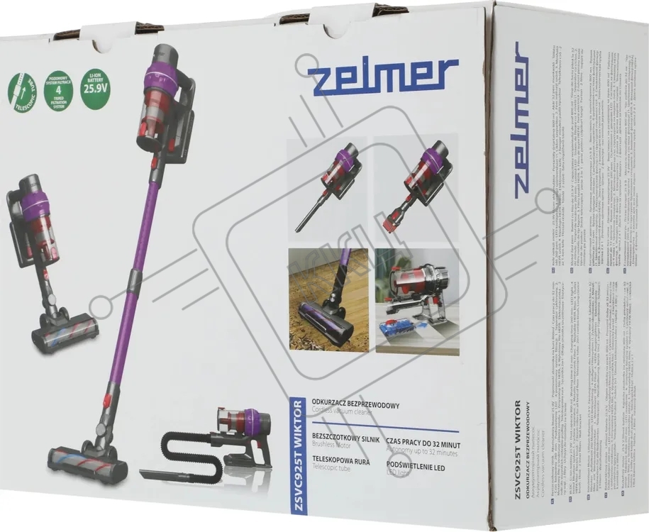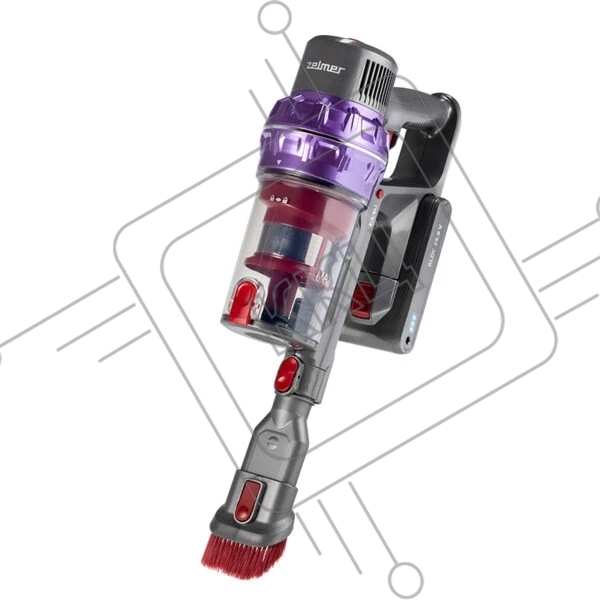 Пылесос вертикальный Zelmer STICK ZSVC925T Wiktor фиолетовый/черный, питание от аккумулятора, 380 Вт, уборка сухая, пылесборник 0.8 л