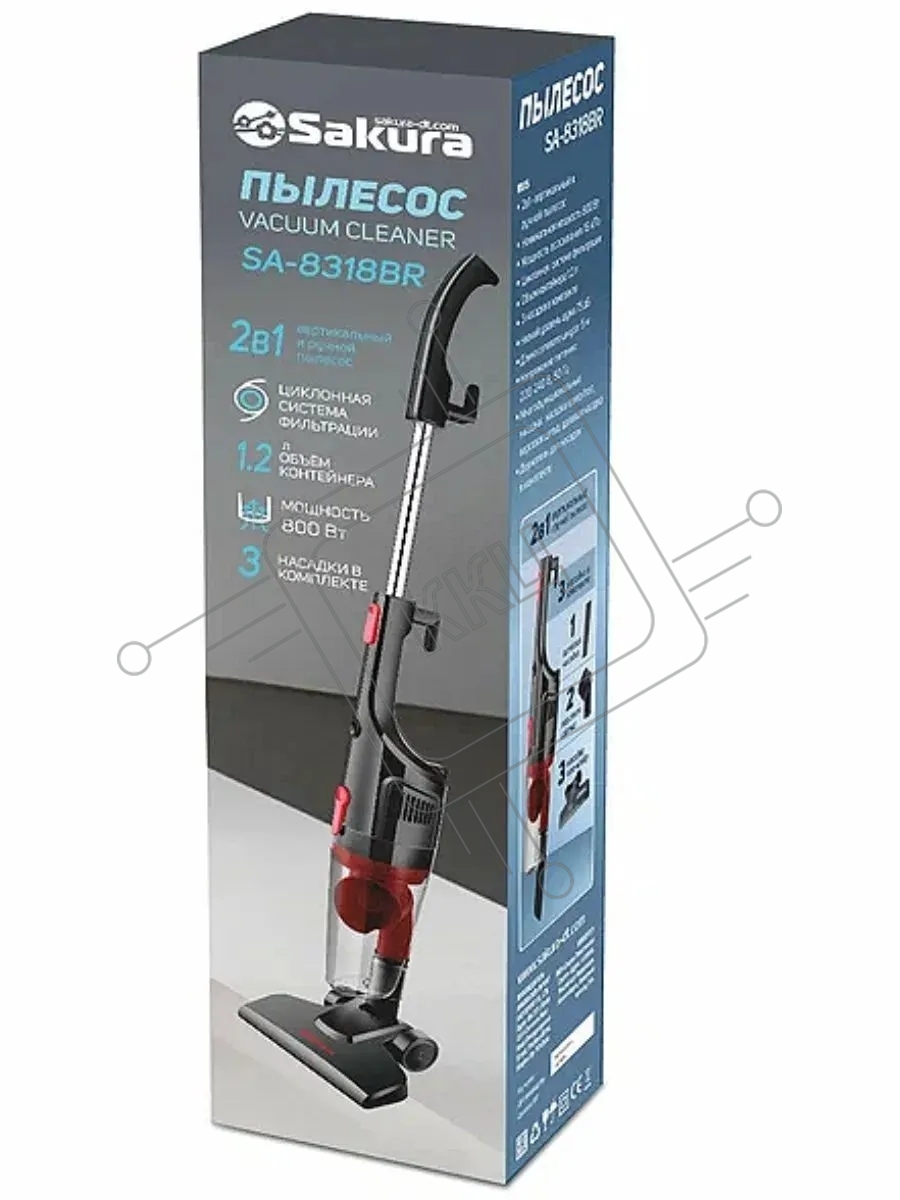 Пылесос вертикальный Sakura SA-8318BR черный/красный, питание от сети, 210 Вт, уборка сухая, пылесборник 1,2 л
