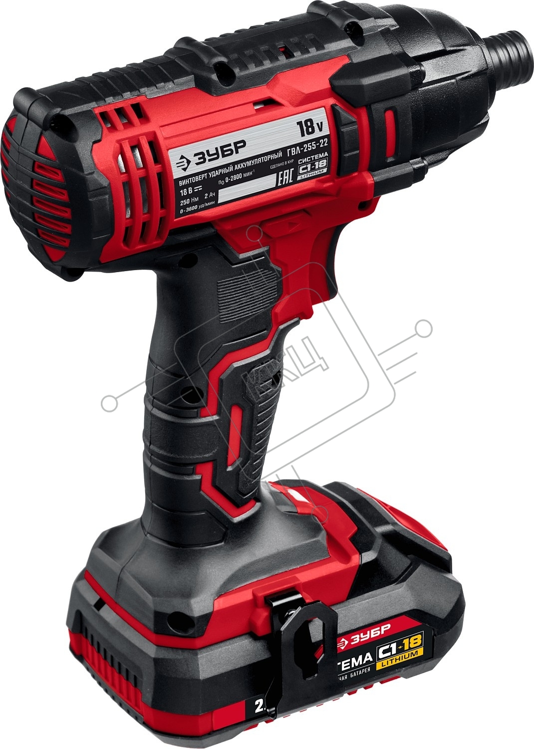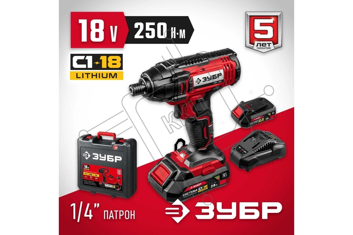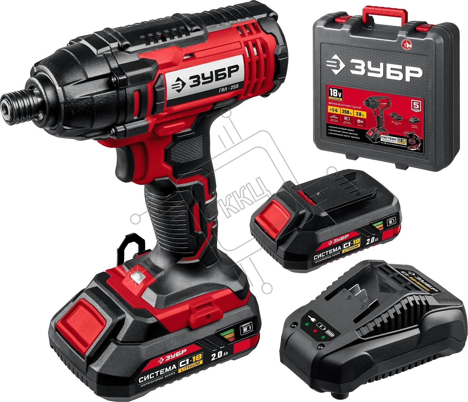 Винтоверт ЗУБР 18В, 2 АКБ (2Ач), в кейсе, ударный. ГВЛ-255-22