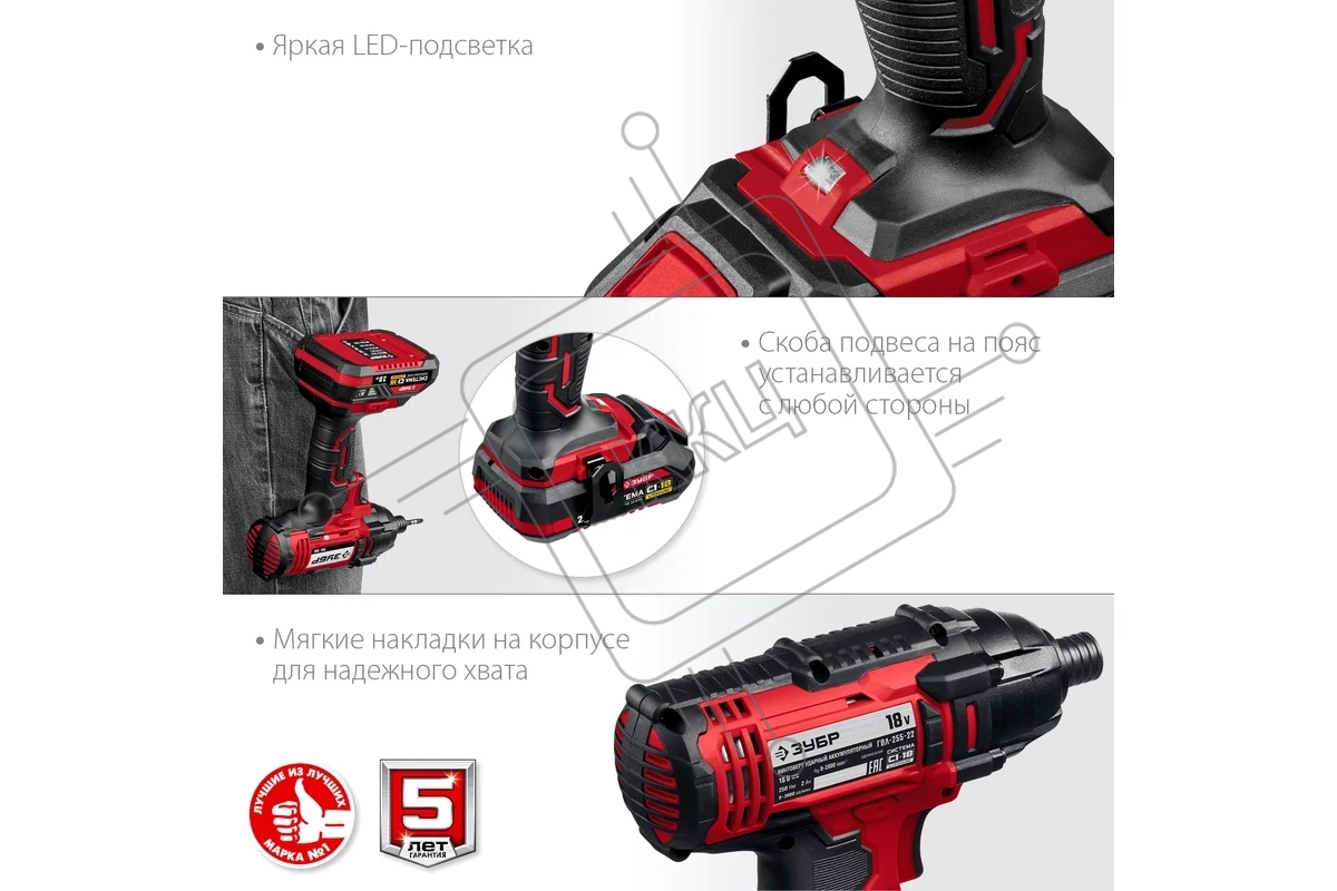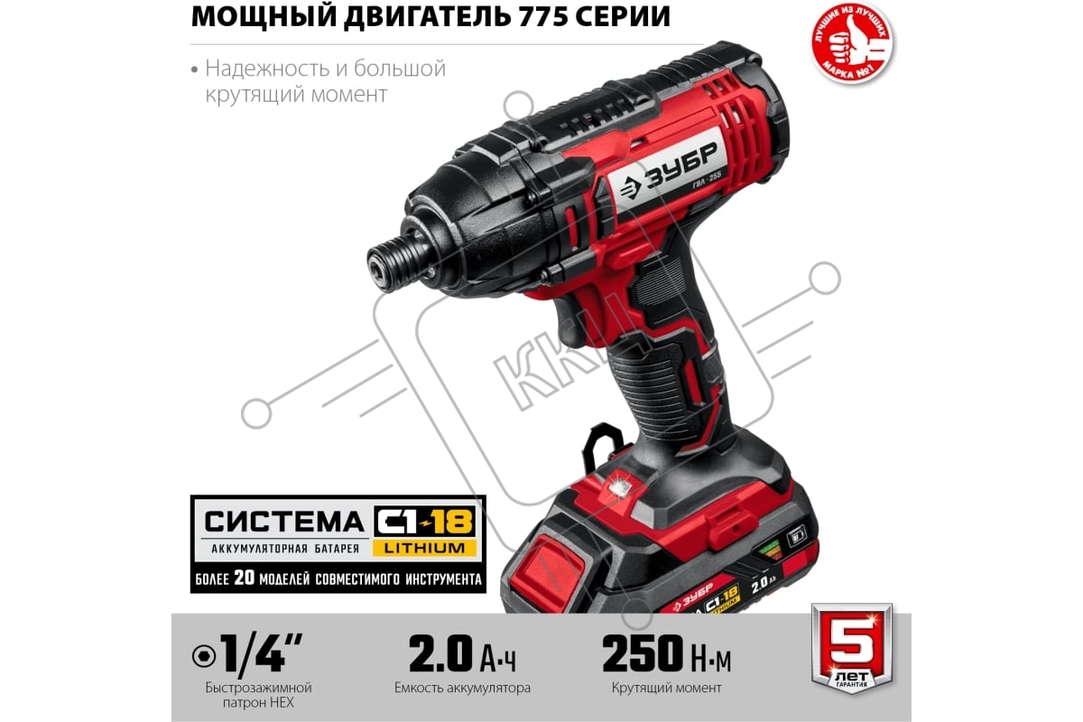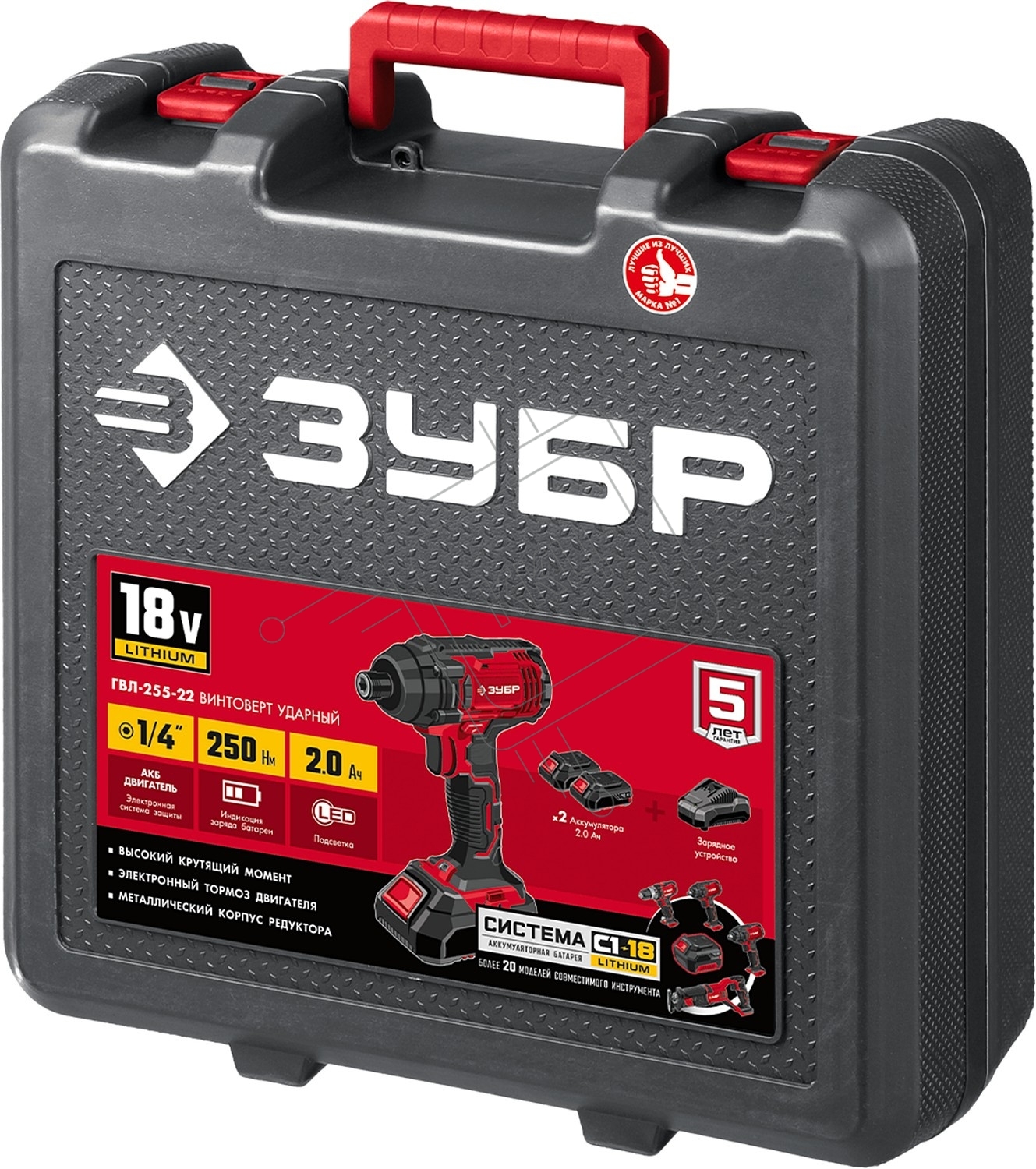 Винтоверт ЗУБР 18В, 2 АКБ (2Ач), в кейсе, ударный. ГВЛ-255-22