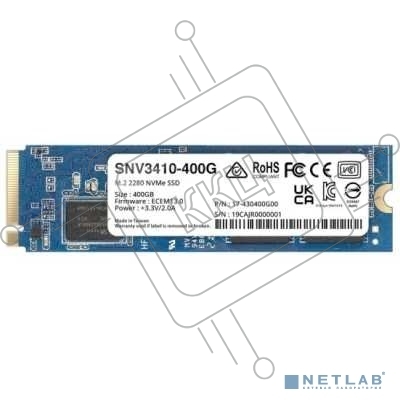Накопитель SSD Synology SNV3000 Series PCIe 3.0 x4,M.2 2280, 400GB, R3000/W750 Mb/s, IOPS 225K/45K, MTBF 1,8M repl SNV3400-400G'