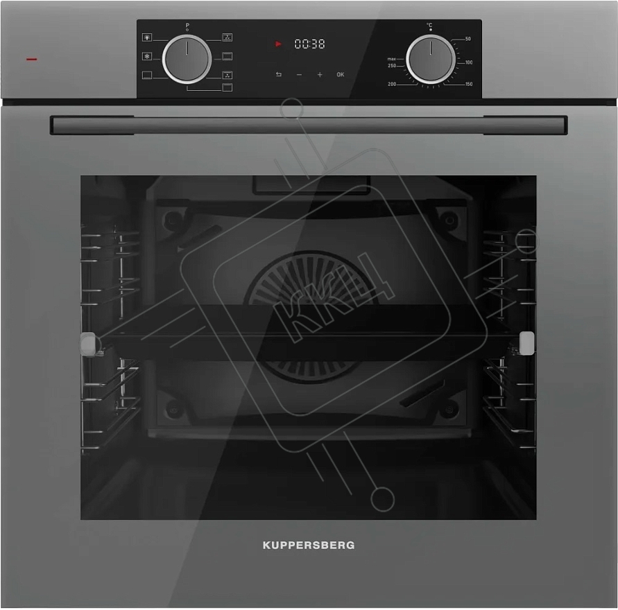 Электрический духовой шкаф Kuppersberg HF 608 GR, Поворотные переключатели, Цифровой таймер, Режимы работы: Нижний нагрев, Традиционный нагрев, Верхний нагрев с конвекцией, Разморозка, Верхний нагрев, Традиционный нагрев с конвекцией, Эмаль легкой очистки