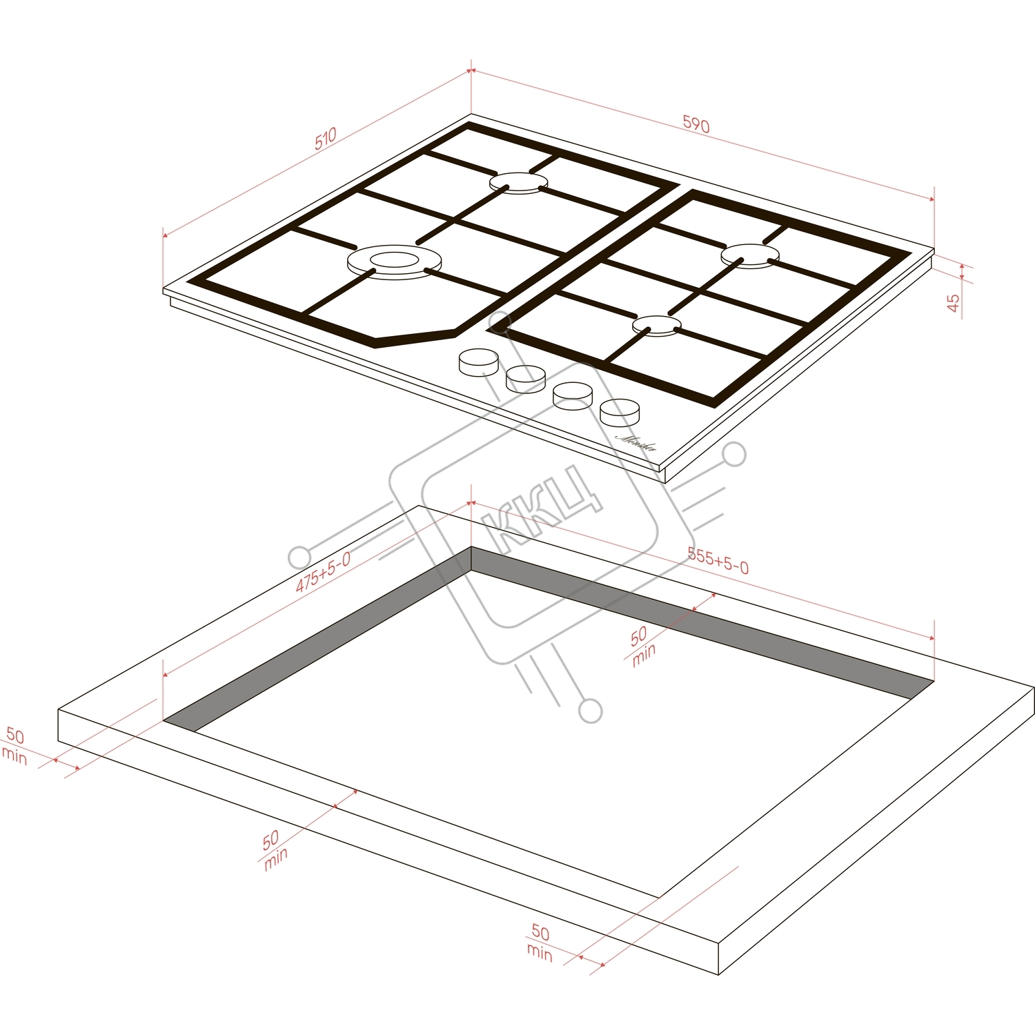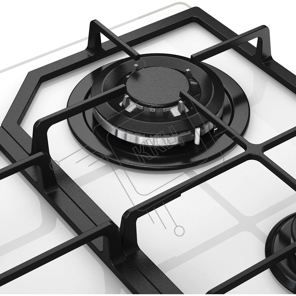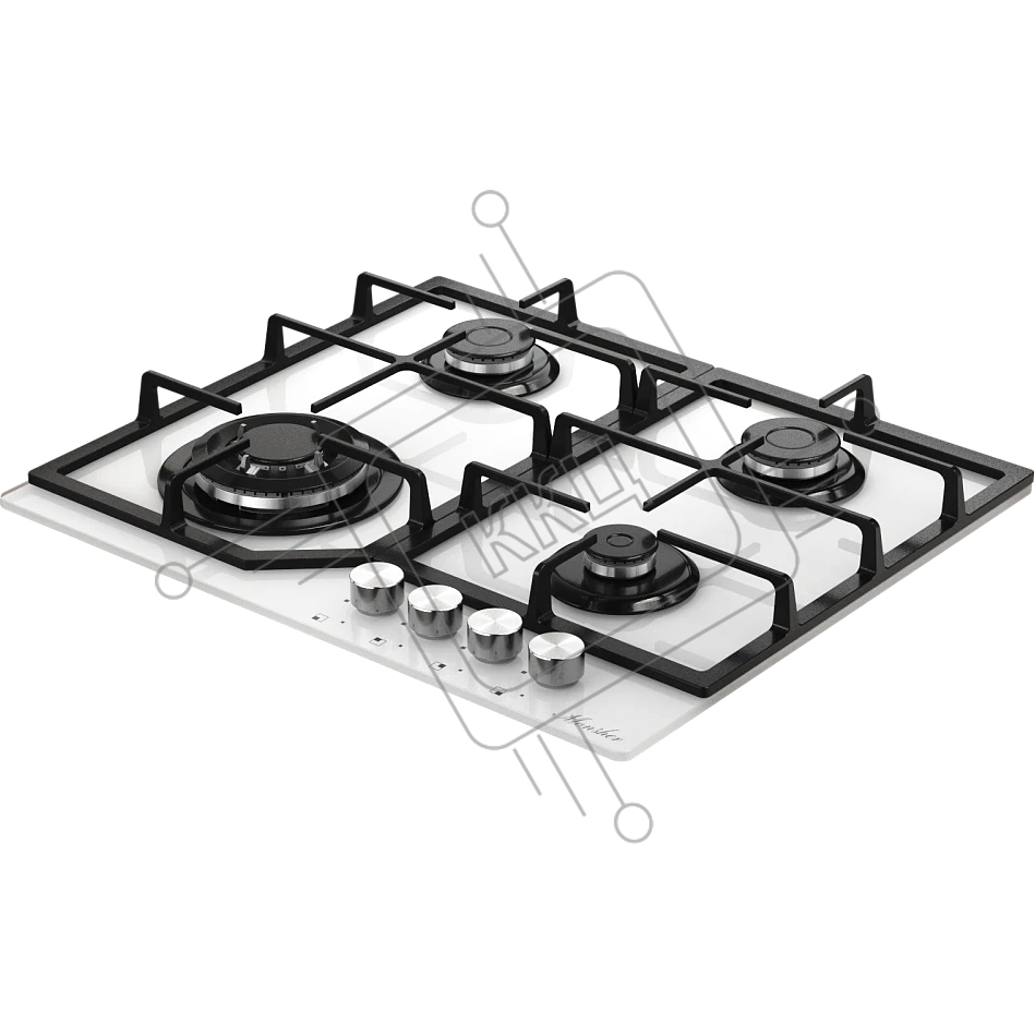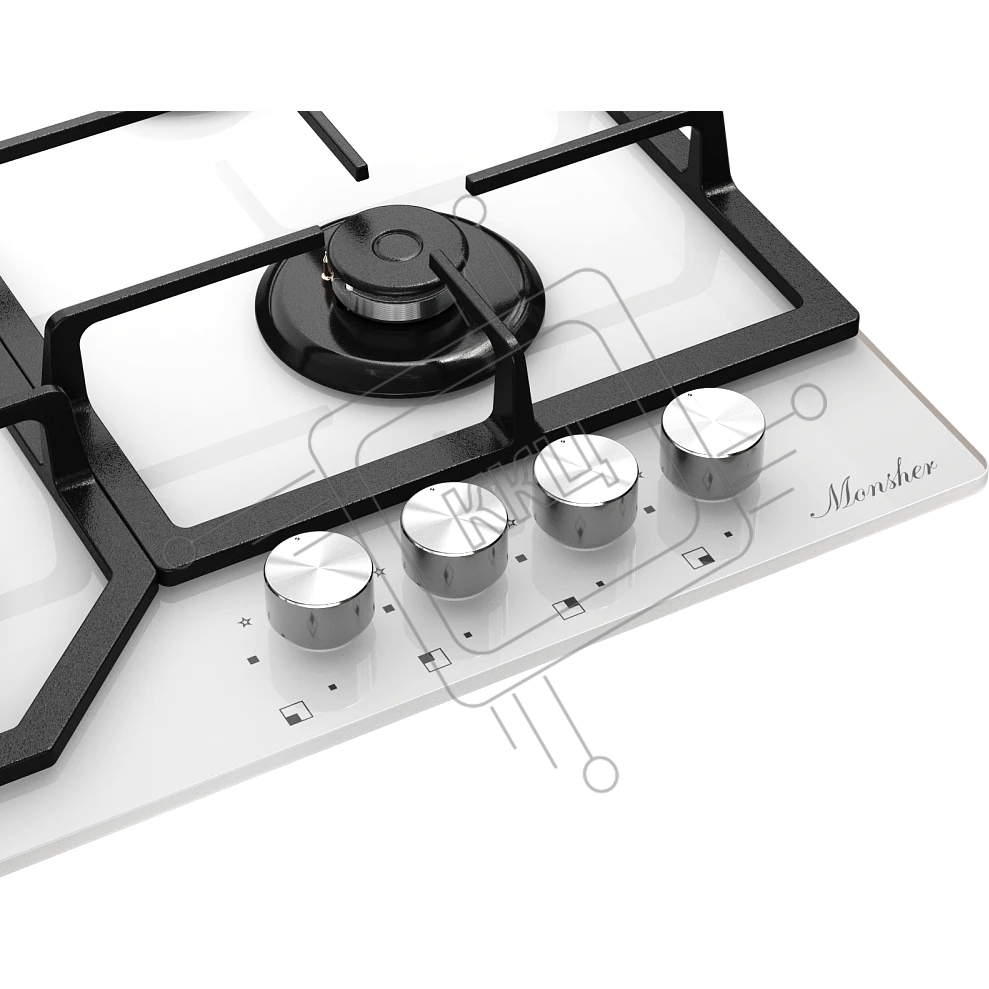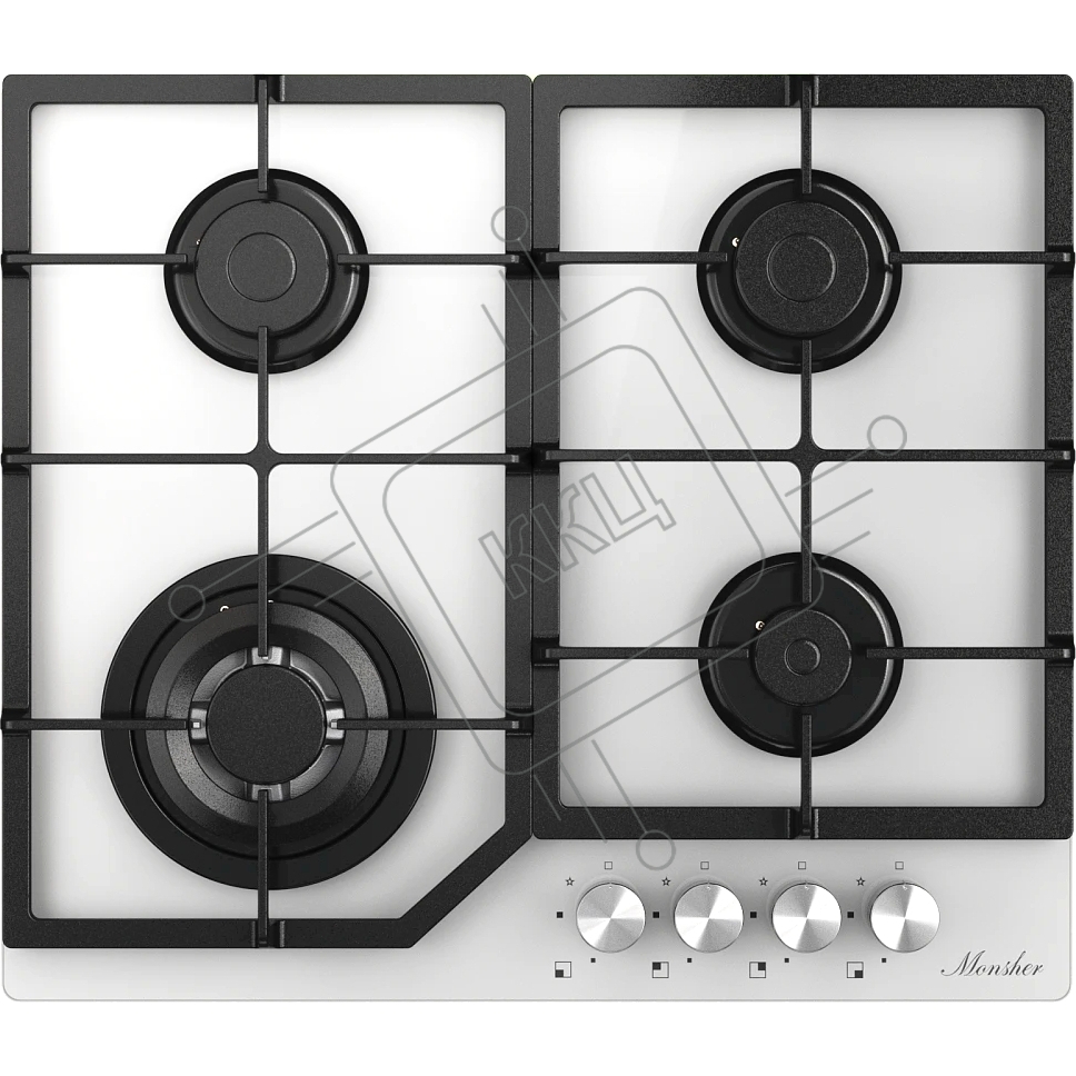 Варочная поверхность MONSHER MGG 63 Blanc, газ, High-Tech, 59 см, автоматический электроподжиг, газ-контроль, форсунки под сжиженый газ, SABAF конфорки, чугунные решетки, цвет белый