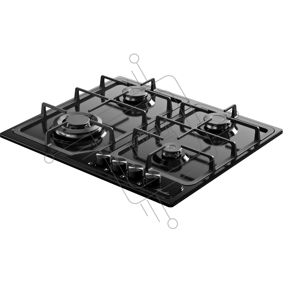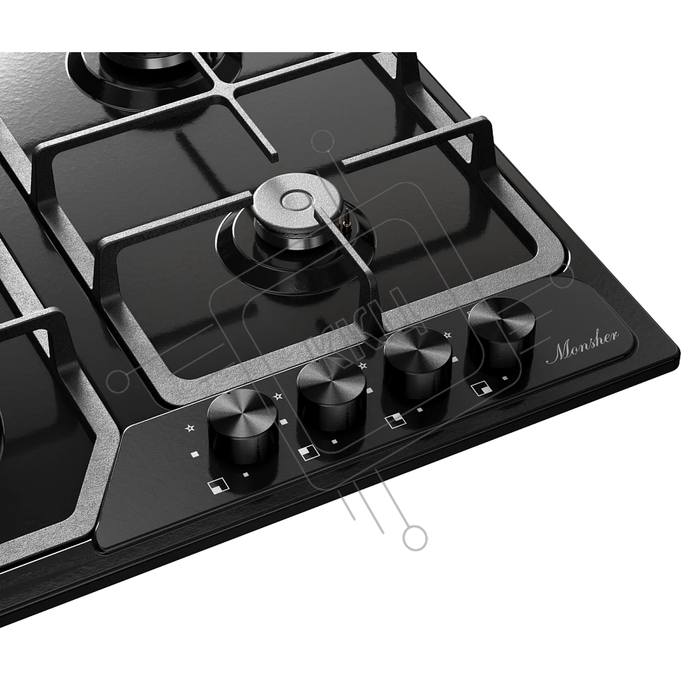 Варочная поверхность MONSHER/ Варочная поверхность MONSHER, газ, High-Tech, 58 см, автоматический электроподжиг, газ-контроль, форсунки под сжиженый газ, SABAF конфорки, чугунные решетки, черный