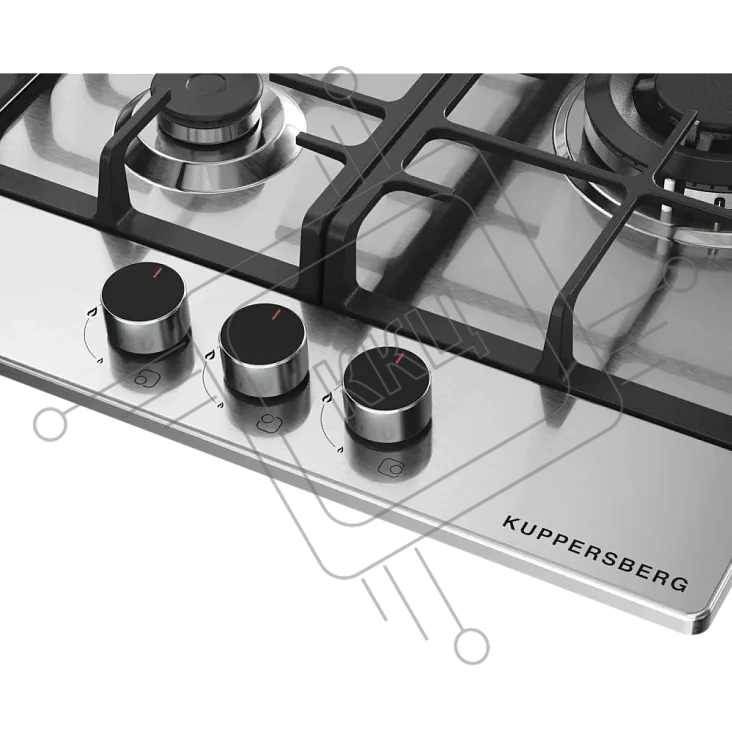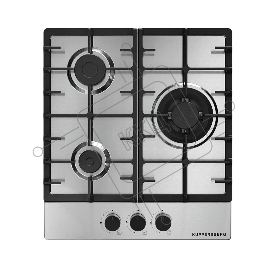 Варочная поверхность Kuppersberg FS 46 X, газ, High-Tech, 45 см, автоматический электроподжиг, газ-контроль, форсунки под сжиженый газ, SABAF конфорки, чугунные решетки, цвет нержавеющая сталь, цвет фурнитуры черный