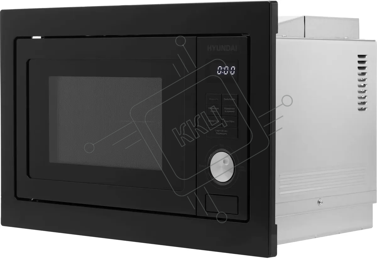 Микроволновая печь встраиваемая Hyundai HBW 2544 BG черный, 25 л, 900 Вт, переключатели - кнопки/поворотный механизм