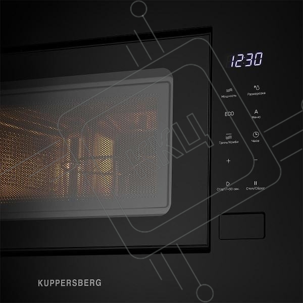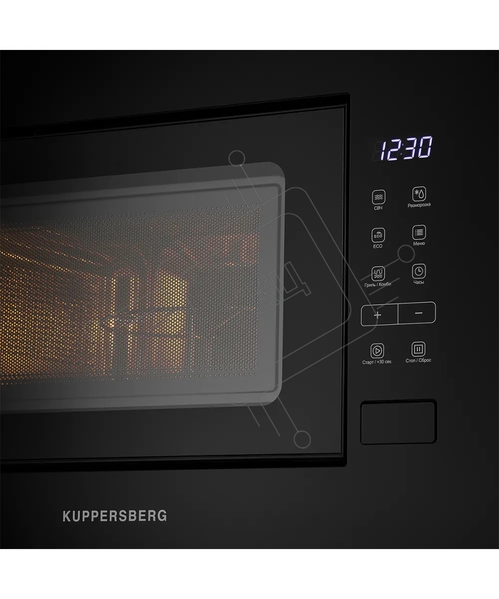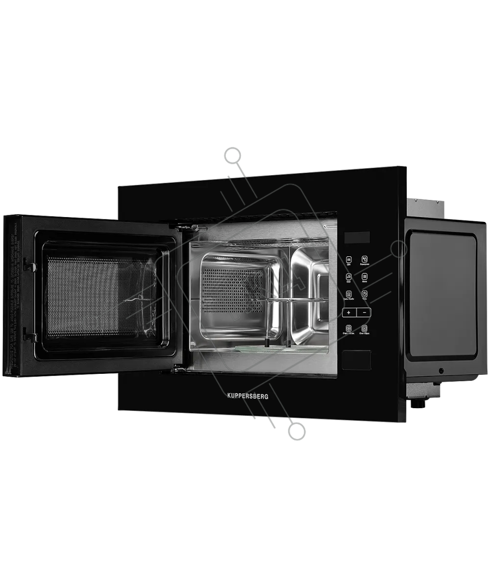 Встраиваемая микроволновая печь Kuppersberg HMW 620 B, объем 20 л, мощность 700 Вт, поворотный стол, High-Tech, 9 автоматических программ, гриль, сенсорное управление, черный