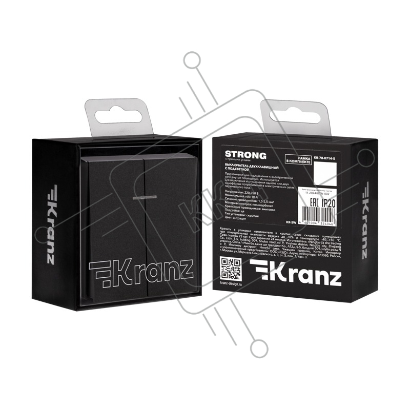 Выключатель STRONG 2 кл с подсветкой 10А с/у антрацит KRANZ
