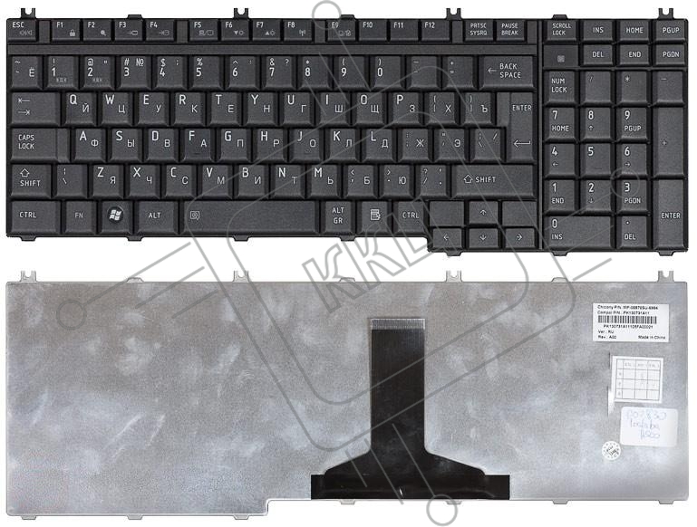 Клавиатура для ноутбука Toshiba Satellite A500 A505 L350 L355 L500 L505 L550 P200 черная матовая