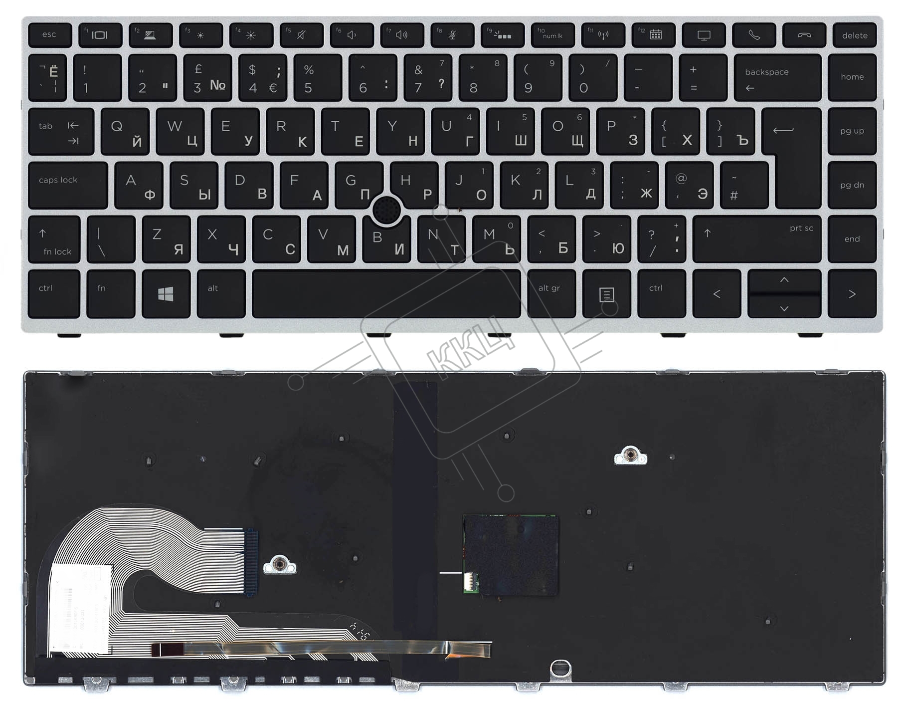 Клавиатура для ноутбука HP Elitebook 840 G5 черная с серебристой рамкой и подсветкой и указателем