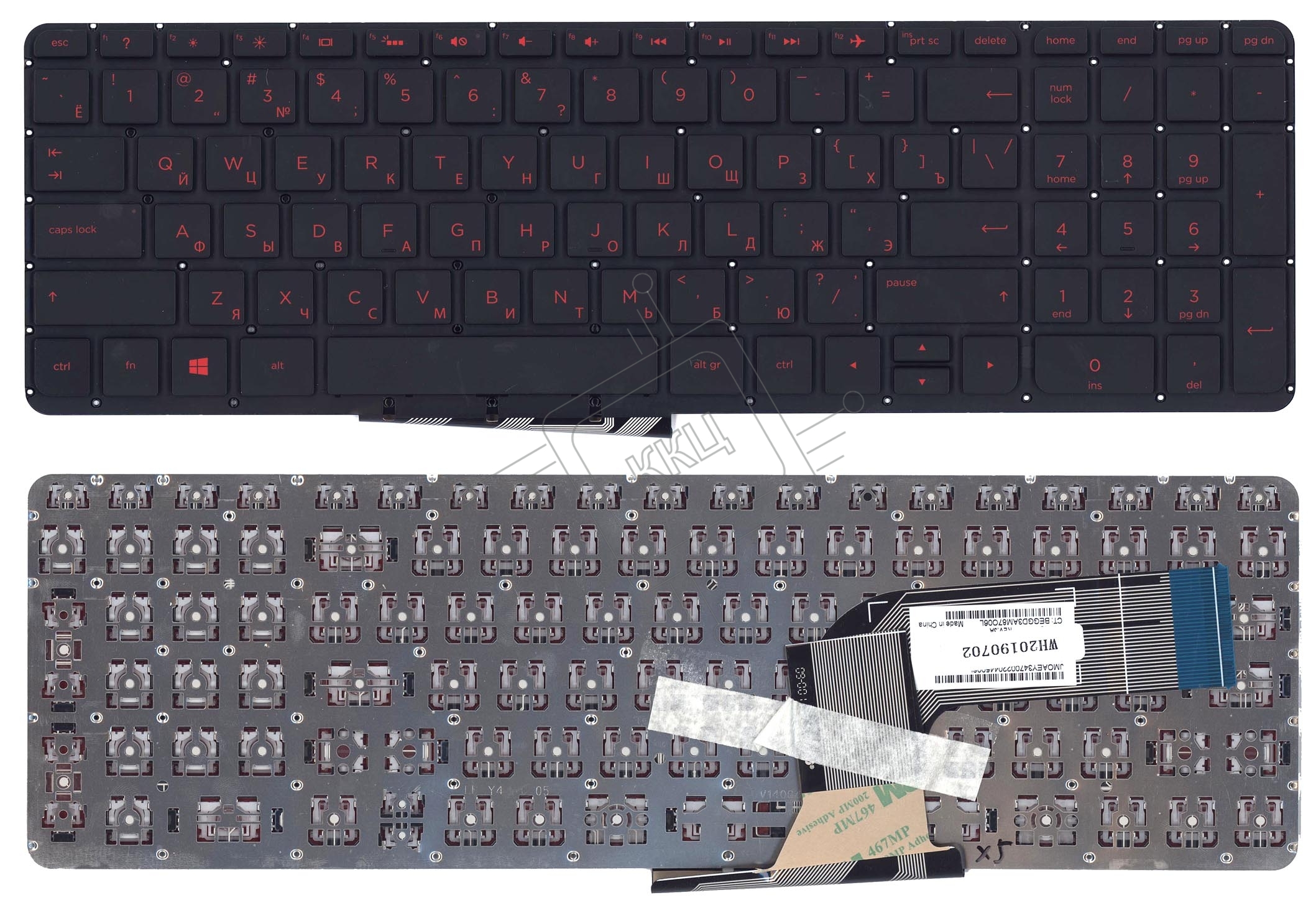 Клавиатура для ноутбука HP Pavilion 15-P 17-F черная с красной подсветкой