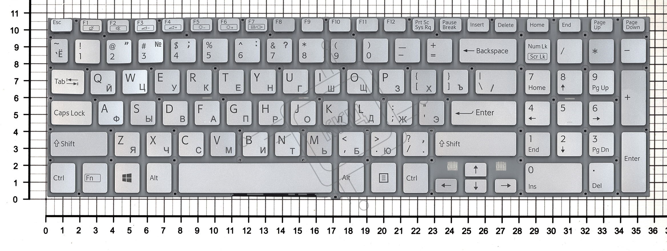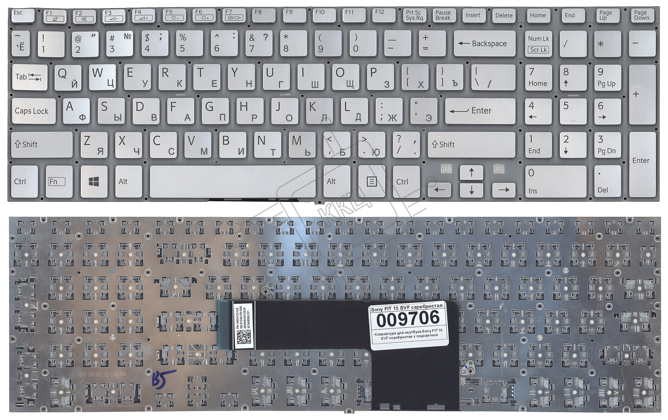 Клавиатура для ноутбука Sony FIT 15 SVF15 серебристая с подсветкой