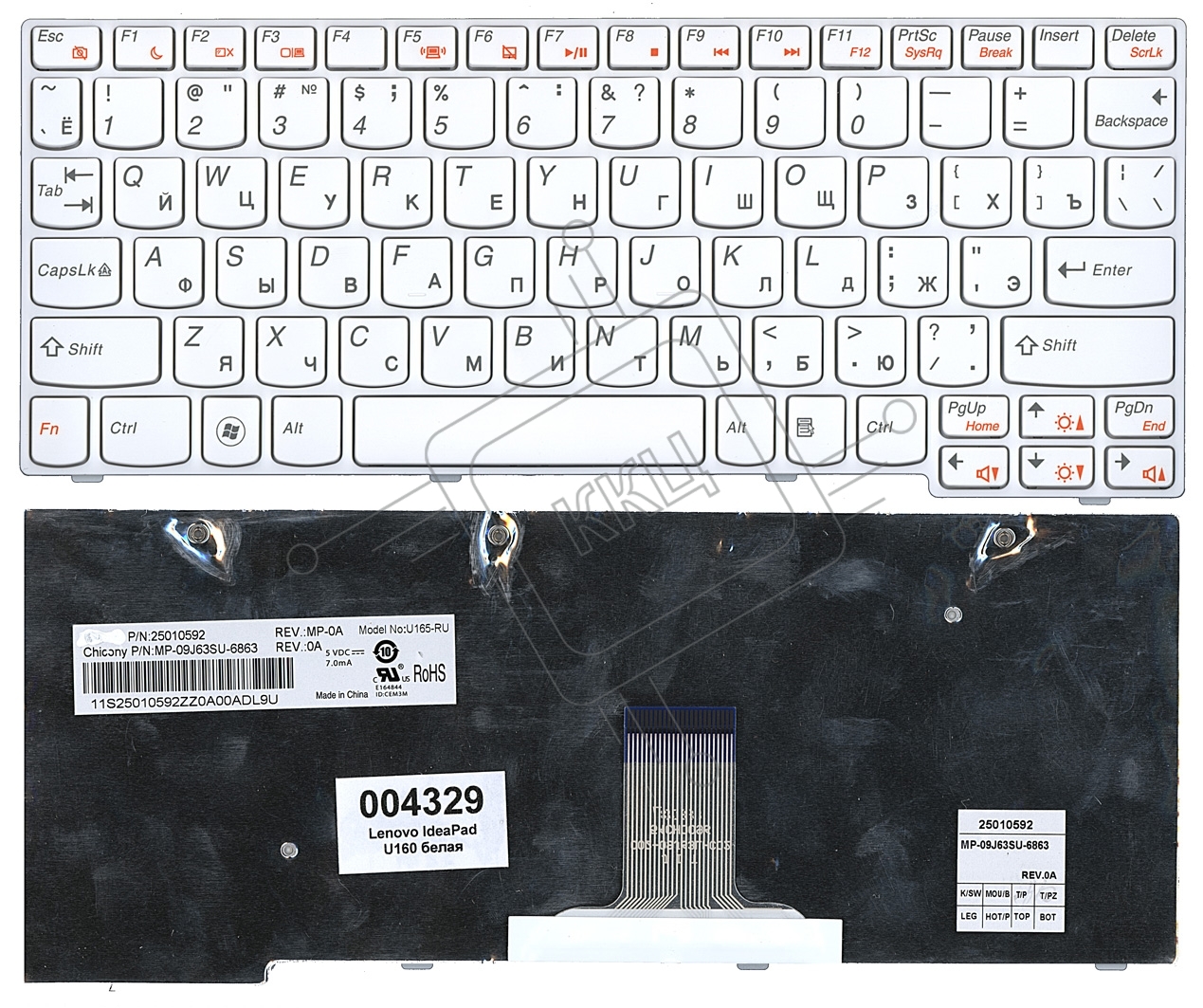Клавиатура для ноутбука Lenovo IdeaPad U160 белая