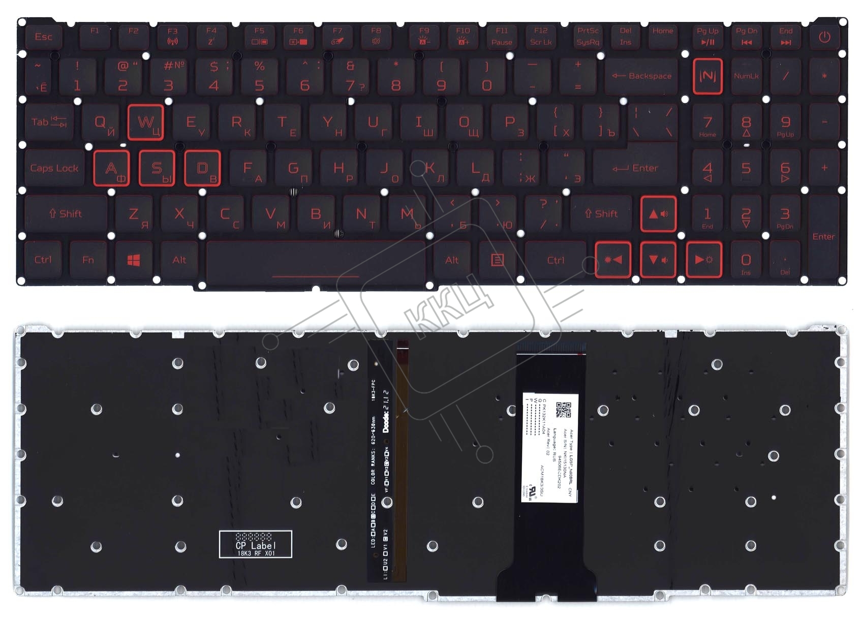 Клавиатура для ноутбука Acer Nitro 5 AN515-54 черная с красной подсветкой (стрелки в рамке)