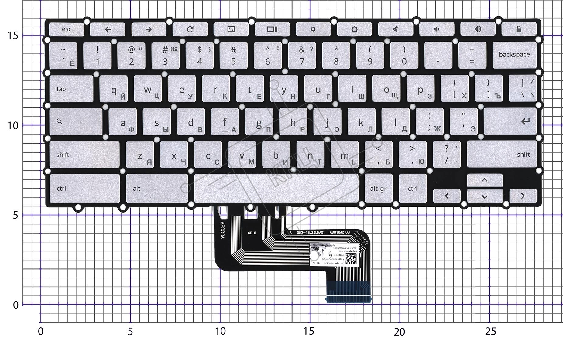 Клавиатура для ноутбука Asus Chromebook C433T серебристая с подсветкой