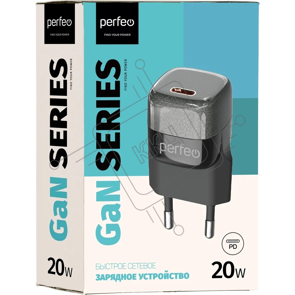 Сетевое зарядное устройство с разъемом PERFEO TYPE-C, GaN, 20W, черный (I4650)